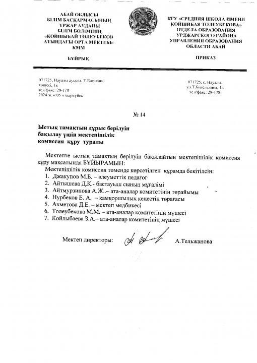 Ыстық тамақ бұйрық » Коммунальное Государственное учереждение "Средняя школа-сад имени Койшибая Толеубекова"