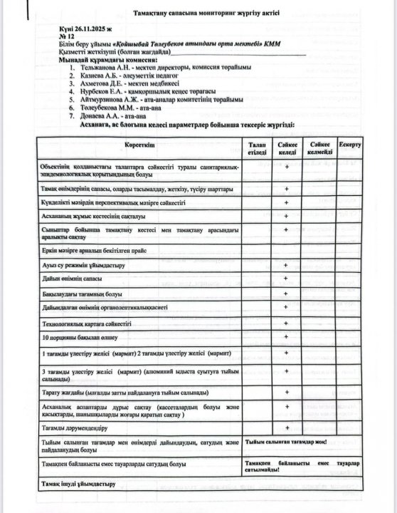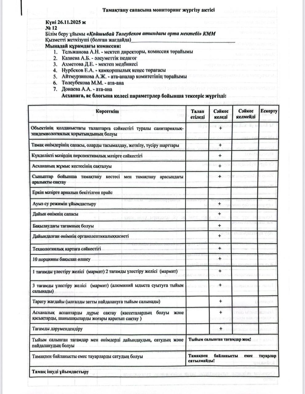 АКТ по питанию » Коммунальное Государственное учереждение "Средняя школа-сад имени Койшибая Толеубекова"